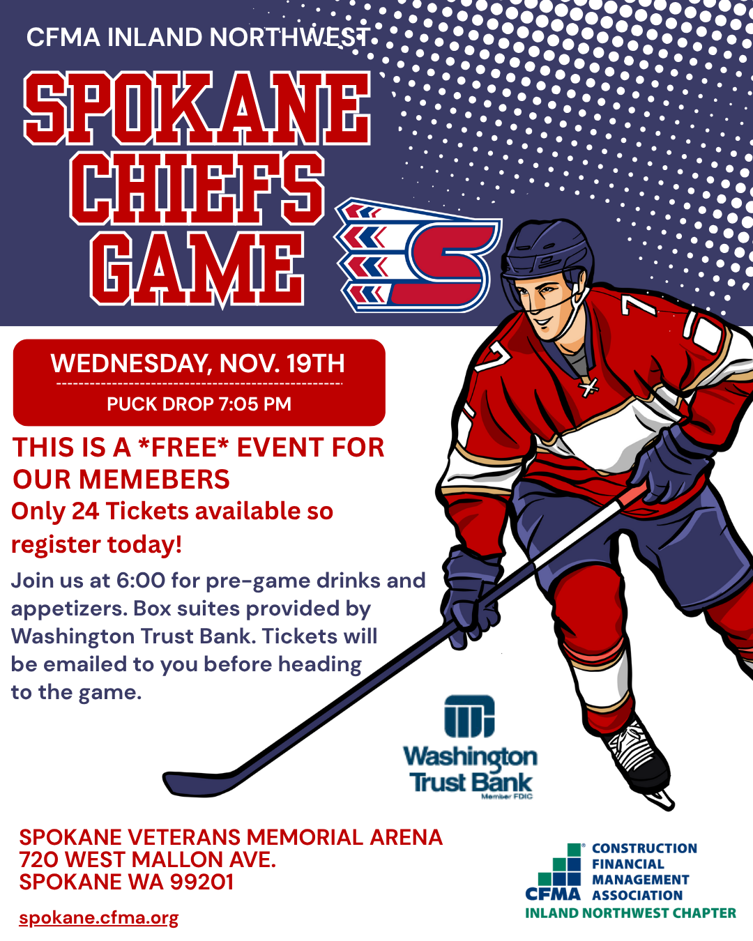 Join the CFMA Inland Northwest Chapter for a fun night at the Spokane Chiefs Game on Wednesday, November 19th!